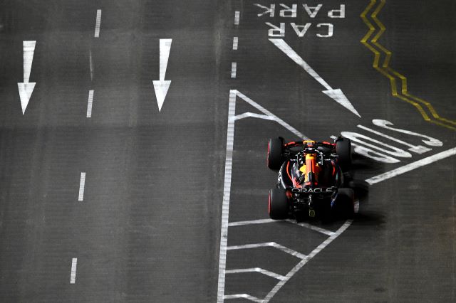 Para la segunda sesión, más noche todavía, el calor seguía intenso pero la pista estaba más rápida y los incidentes abundaron. El primero en causar una bandera roja fue George Russell al corregir en la entrada a una curva, perder el tino y pegarle a la barda del otro lado. Bandera roja y salida temprana a los fosos para el piloto de Mercedes, quien quedaría último en esa Práctica 2. Tras el reinicio de la actividad los McLaren se fueron a la punta de los tiempos con Osca Piastri delante de Lando Norris, pero pronto fue Liam Lawson el que trajo una segunda roja con un toque contra la barda cuando parecía querer ampliar el radio de la Curva 17, lo cual daño todo el lado derecho del VCARB.