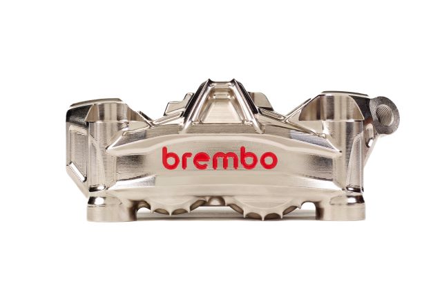 Caliper Brembo GP4-HY: Para aprovechar al máximo el potencial del disco, Brembo desarrolló el GP4-HY, un caliper monobloque radial fabricado de aluminio. La designación GP4 sigue los nombres de los calipers de rendimiento de Brembo fabricados a partir de un sólido, mientras que HY se refiere a Hyction, destacando que el caliper está diseñado específicamente para funcionar en sinergia con el disco.