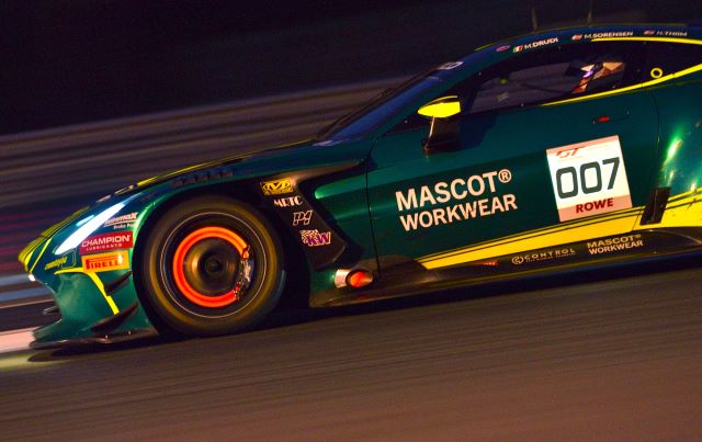 Entre los pocos que pudieron seguirlo estaba el Aston Martin #007 de los daneses Nicki Thiim y Marco Sorensen, con el italiano Mattia Drudi, quien lograron evitar una catástrofe cuando Marco sufrió un pinchazo al final de su primer turno y logró entrar a fosos sin perder mucho tiempo y se mantuvo a la caza de los punteros. El Mercedes verdeamarillo no cedía pese a los cambios de piloto, pero su paso no lo apartaba mucho de sus perseguidores gracias a las banderas amarillas por incidentes y la noche empezó a caer con el #48 en la punta y así llegó la hora final.