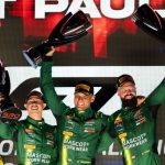 El Aston Martin se deshizo metódicamente de los rezagados y luego redujo la ventaja del auto germano imponiendo la vuelta más rápida de su carrera, para estar en los escapes del #48 faltando menos de 10 minutos por correr. Thiim presionó e intentó pasar a Auer en la recta, pero no funcionó en su primer intento, pero a la siguiente vuelta atacó con más furia y Auer se pasó un poco en su frenada y se abrió, lo que el danés aprovecho para meter la trompa del Vantage y tomar el mando al final de la recta entrando a la famosa curva de Signes. En las cuatro vueltas restantes el danés amplió su ventaja a ocho décimas y cruzó la meta vencedor para darle su primer triunfo a la marca británica desde 2024 El podio lo completó Benajmin Goethe a bordd de un McLaren 720S del equipo Garage 59 marcado con el #58 siendo el ganador de la batalla contra otro McLaren del mismo equipo y el BMW #32 de Sean Gelael, el cual acabó cuarto.