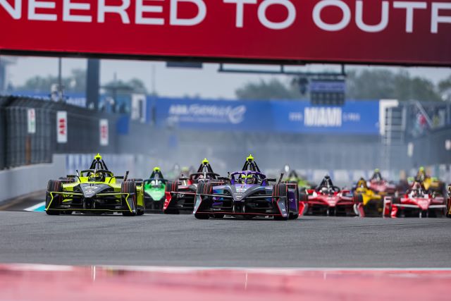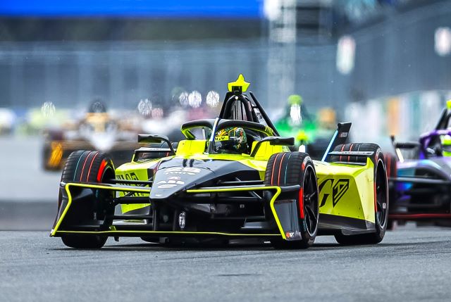 Mueller se mantuvo al frente, con Felipe Drugovich activando inmediatamente el primero de sus dos Modo Ataque (MA) de 50 kW con tracción total y tomando la primera posición apenas unas curvas más tarde, en condiciones complicadas y húmedas. Mueller y de Vries siguieron el mismo camino con el MAuna vuelta después, mientras que Eriksson y Wehrlein lo hicieron en la vuelta 8. Los dos primeros alcanzaron el liderazgo en la vuelta 9, con sus períodos de MAsuperponiéndose al de Drugovich. El liderazgo volvió a cambiar en la vuelta 11, cuando el brasileño de Andretti superó al Mahindra de de Vries para ubicarse segundo, con Nico Mueller, de Porsche, aún al frente. Un par de vueltas más tarde, Drugovich llegó a la P1, superando a Mueller en el Sector 1. Las condiciones eran extremadamente difíciles y resbaladizas, con muy poco agarre disponible.