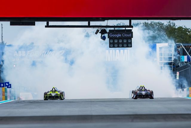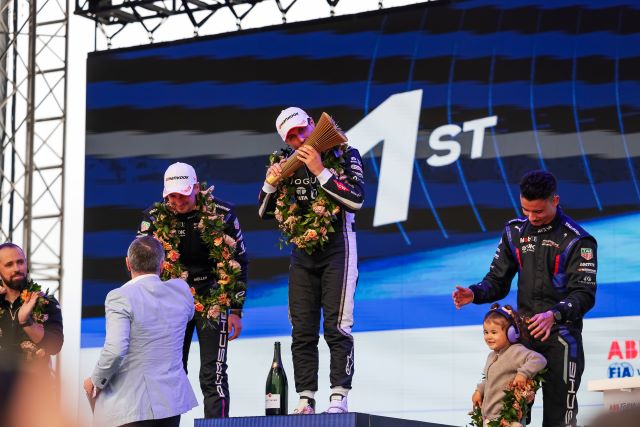 Al final de la vuelta 27, Evans engañó a Mueller con una finta para robarle el liderazgo a través de las últimas curvas —una maniobra espectacular— con de Vries ahora situado tercero. Evans había construido una ventaja de 1.5 segundos al llegar a la vuelta 30 sobre Mueller y de Vries. Todo el pelotón aún debía realizar su segunda activación del MA, por lo que todo podía cambiar. Wehrlein fue el primero del top 10 en pasar por el bucle de activación para su segundo MAde cuatro minutos de ese impulso de 50 kW con tracción total. Mueller respondió en la vuelta 34 para cubrirlo, mientras Wehrlein tomaba la P3 y Mueller se colocaba segundo, antes de que el líder Evans activara su MA. Evans tenía la superposición del MAy la aprovechó, ampliando su ventaja a 2.5 segundos con dos vueltas por delante. Él y Mueller habían dejado a Wehrlein a seis segundos, y todo apuntaba a una conducción perfectamente medida del neozelandés. Y así fue: mantuvo el control hasta la bandera a cuadros para imponerse sobre Mueller y Wehrlein. Joel Eriksson (Envision) terminó cuarto, su mejor resultado en la categoría, seguido por los coequiperos de Mahindra Nyck. de Vries y Edo Mortara, quienes cerraron en los seis primeros sitios. En el podio los tres ganadores celebraron con ganas: