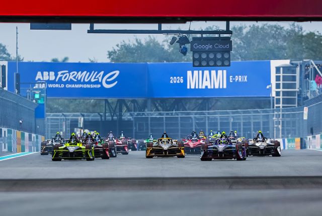 Con condiciones húmedas en Miami y sin rodaje previo en pista mojada, la carrera se puso en marcha detrás del Auto de Seguridad. El pelotón se reagrupó tras cinco vueltas de neutralización para una arrancada normal, con los líderes peleando por posición en la curva 1. como se aprecia en la secuencia de nuestro enviado: