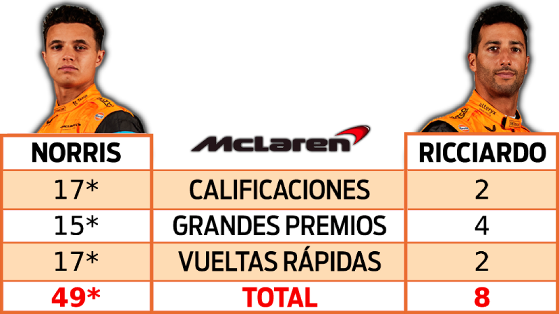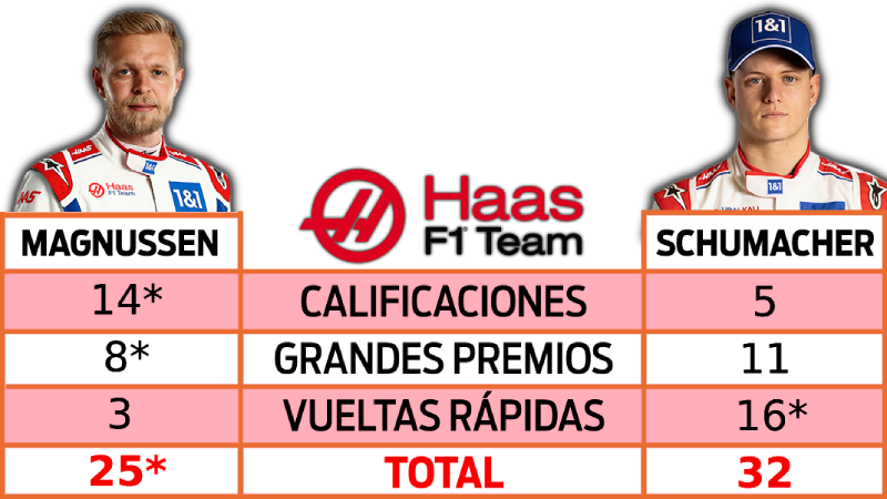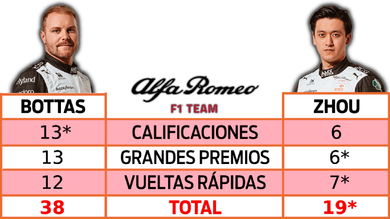 La guerra más cerrada sigue siendo en Aston Martin donde se rompió el empate a 24 y Vettel lidera por apenas un punto. Esta se va a ir hasta el final, pero Seb se ve cerrando mucho mejor. Tal vez es porque sabe que son sus últimas carreras en el máximo nivel del automovilismo (a menos que regrese con Audi en 2026).