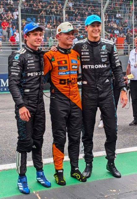 En ella Bearman salió primero y no mejoró, Leclerc pudo pasar a Piastri, quien tampoco mejoró su crono. Pero Norris fue espectacular, sin errores y bajó a 69.511s poniéndose primero, mientras que Andrea Kimi también brincó a la primera fila quedando detrás del McLaren por 174 milésimas.