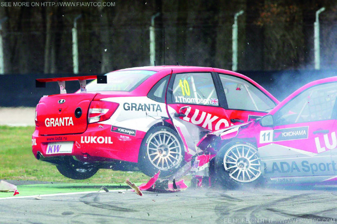 El sábado en la calificación, Muller quedó a más de un segundo delante de todos los que no eran sus coequipero (22 autos más) y todos sus rivales se pusieron a ejecutar la danza de la lluvia en los fosos para ver si el clima húmedo emparejaba la situación. Y en los fosos del equipo oficial de LADA, los daños causados por su segundo piloto, Aleksei Dudukalo, al auto del líder James Thompson, forzaron a retirar los Granta de la carrera; mal debut para los osos del automovilismo. Y Dudukalo sería corrido del equipo antes de la siguiente fecha.