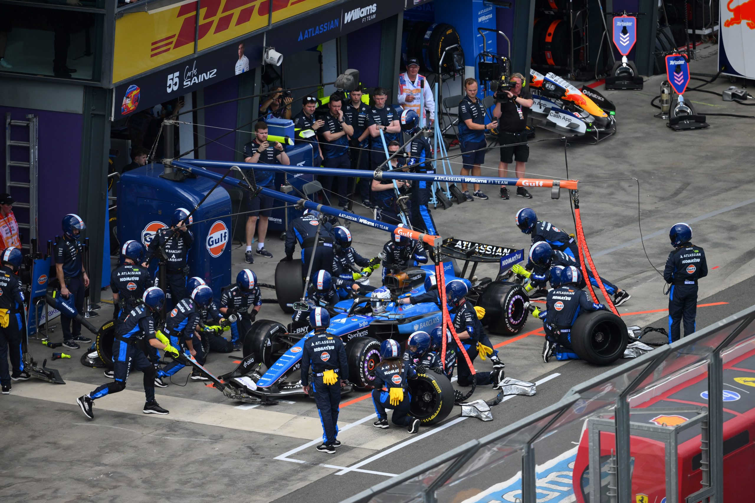 La mañana del sábado hubo un choque en el Sprint de F3 que dañó las barreras y provocó un retraso Enel inicio de la Práctica 3 y, al inicio de esta, Carlos Sainz se quedó varado y provocó una bandera roja para que retiraran su Williams dañado. Al regreso a verde Lewis era el más veloz, pero los autos se soltaron en el último cuarto de hora y Russell rápidamente se fue al frente con 79.053 segundos, pero su coequipero Andrea Kimi perdió el Mercedes y acabó en la barrera provocando otra roja. Cuando quitaron el auto dañado quedaban tres minutos y los autos salieron a dar un giro final, aunque pocos mejoraron. Al fnalq quedaron Lewis y Charles detrás de George en sus auto rojos, con Oscar Piastri en cuarto, luego los RB22 con Hadjar delante de Verstappen, Andrea Kimi en séptimo pese al choque, y Lando Norris en octavo, con Bortoleto y Bearman colándose a la primera decena de tiempos. Checo quedó vigésimo con un crono de 94.397 segundos y Stroll no salió por un problema quedando en la cola detrás de Sainz y sin tiempo.