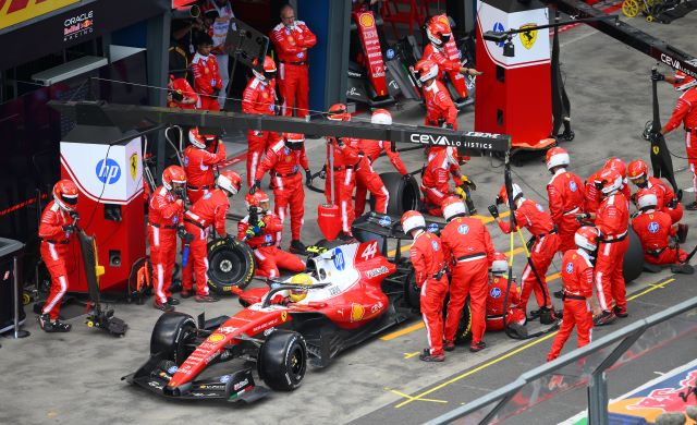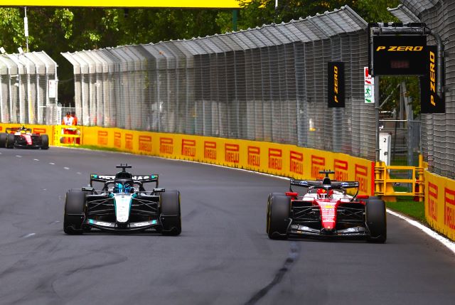 Russell no dejaba escapar a Leclerc, pero tampoco lo apretaba pues estaba pensando en la carrera no en una pelea temprana y ambos se alejaban de Lewis que empezaba a ser cazado por Antonelli. Así llegaron a la vuelta 10 cuando el RB22 de Hadjar se orilló con fuego en la parte trasera y su motor explotó causando un auto de seguridad virtual. Era temprano para parar pues la carrera estaba pactada a 58 vueltas y los Ferrari eligieron quedarse fuera, pero los Mercedes fueron a los fosos a dejar sus Pirelli amarillas y poner unas blancas duras mientras que la mayoría de los equipos optaron por meter a uno de sus pilotos dejando al otro fuera para explorar caminos diferentes, y Lewis reclamó por radio que deberían haber hecho lo mismo para cubrir a Mercedes. Al reanudarse la acción los Ferrari estaban al frente, pero con los Mercedes cerca detrás, aunque tendrían que durarles 46 giros sus llantas para llegar al final.