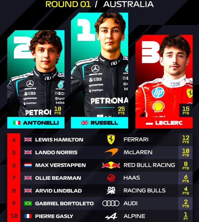 Inició la F1 en Melbourne, Australia, y como anticipaba la pretemporada, Mercedes está muy por arriba del resto y ganó con cierta facilidad logrando un 1-2 con George Russell e lo más alto del podio.