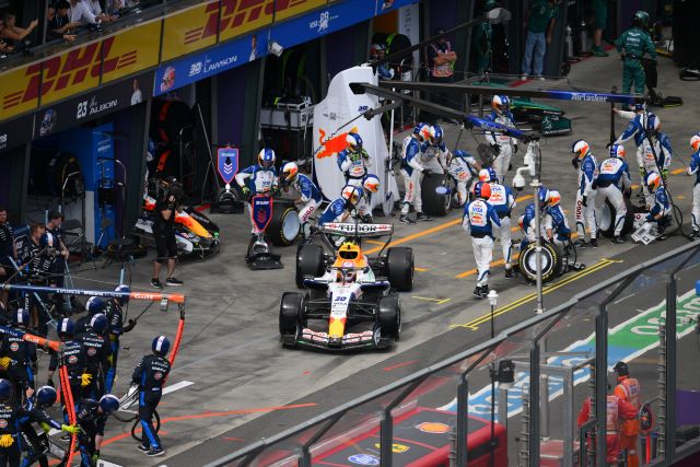 Russell no dejaba escapar a Leclerc, pero tampoco lo apretaba pues estaba pensando en la carrera no en una pelea temprana y ambos se alejaban de Lewis que empezaba a ser cazado por Antonelli. Así llegaron a la vuelta 10 cuando el RB22 de Hadjar se orilló con fuego en la parte trasera y su motor explotó causando un auto de seguridad virtual. Era temprano para parar pues la carrera estaba pactada a 58 vueltas y los Ferrari eligieron quedarse fuera, pero los Mercedes fueron a los fosos a dejar sus Pirelli amarillas y poner unas blancas duras mientras que la mayoría de los equipos optaron por meter a uno de sus pilotos dejando al otro fuera para explorar caminos diferentes, y Lewis reclamó por radio que deberían haber hecho lo mismo para cubrir a Mercedes. Al reanudarse la acción los Ferrari estaban al frente, pero con los Mercedes cerca detrás, aunque tendrían que durarles 46 giros sus llantas para llegar al final.