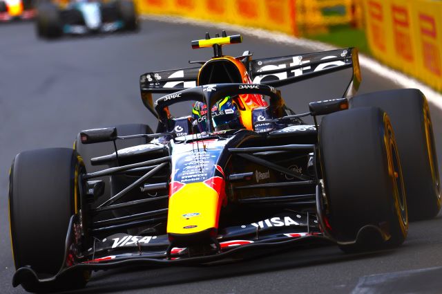 Unas horas después llegó la Calificación con sus tres fases, aunque en la primera no salieron ni Stroll ni Sainz cuyos autos seguían en los fosos reparándose. Para Stroll esto significaba que probablemente no correría pues no estuvo dentro del 107% del mejor tiempo en sesión alguna y no tenía derecho a formarse en la parrilla. Max Verstappen dio la primera sorpresa al perder el auto en una frenada cuando bloqueó su tren trasero y terminó en la barda luchando contra el impacto hasta el último segundo sin soltar el volante. Eso trajo una bandera roja y al reanudarse la Q1 los tres eliminados fueron los dos Cadillac, con Sergio delante de Valtteri Bottas y El Aston de Fernando Alonso en el sitio 17°.