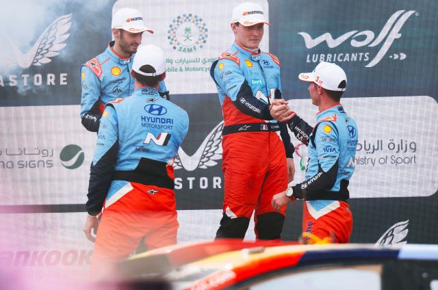 De forma poco común, los tres pilotos quedaron fuera de la pelea por el triunfo del rally, al tener que limpiar el camino en superficies sueltas. A esto se sumó que varios tramos eran tan abrasivos que representaban un alto riesgo de ponchaduras, por lo que también perdieron valiosos segundos. Los beneficiarios fueron los pilotos que salían más atrás como Ott Tanak, cuarto en su Hyundai, quien fue inicialmente el más veloz hasta que sufrió pinchazos y se retrasó. También el Ford del letón Martin Sesks lideró al final del viernes, pero quedó eliminado tras dos pinchazos en la segunda etapa del día final en los que perdió siete minutos. Al final eso dejó adelante a los Hyundai de Thierry Neuville, campeón 2024, quien tenía casi un minuto al cierre de la justa sobre su coequipero Adrien Fourmaux, que pudo ganar, pero los pinchazos lo retrasaron. Los tres Hyundai fueron estos: