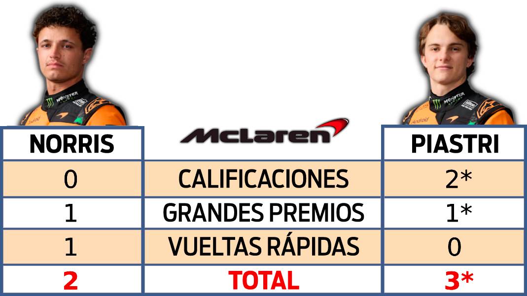 El caso de Piastri está para analizarse pues lleva dos Calificaciones derrotando a Lando, pero no ha podido dar una sola vuelta de carrera, lo cual lo tiene apenas con un 3-2 sobre el campeón del mundo y mucho peor en la tabla del Campeonato. McLaren, como equipo, también está sufriendo mucho en este inicio de las nuevas regulaciones cayendo a tercero en el orden de equipos, pero muy atrás de Ferrari y Mercedes. Peor aún, en China no pudieron dar vueltas el domingo lo cual dejó a los dos pilotos sin Vuelta Rápida.