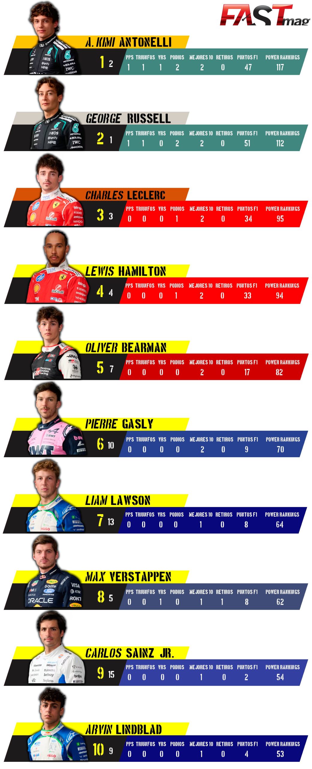 POWER RANKINGS FASTMAG F1 2026 – POSICIONES TRAS GP DE CHINA