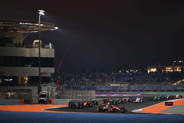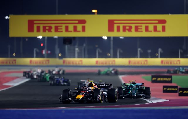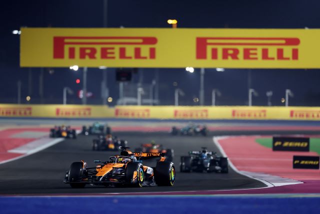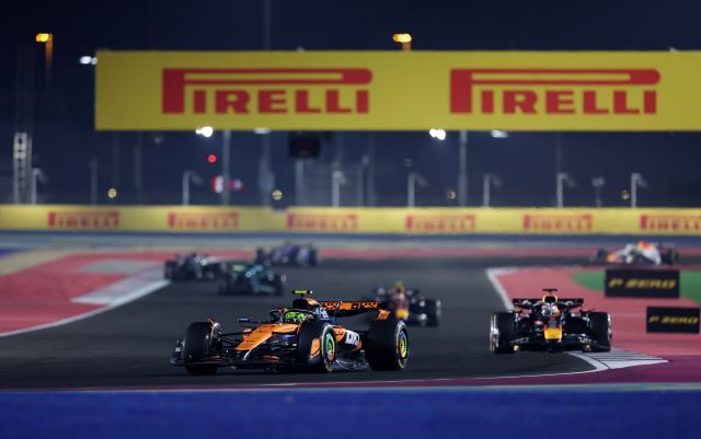 El sábado en Qatar arrancó con un Sprint en el cual todos los autos calzaron Pirelli medias amarillas para la carrera y en la que cuatro eligieron arrancar desde los fosos tras algunos cambios. Oscar Piastri tuvo una salida buena, conservó la punta, contuvo a George Russel y a Lando Norris y se posicionó en punta, pero atrás de ellos Max Verstappen pasó a Alonso por fuera, luego fue dejado libre por su coequipero Yuki Tsunoda y estaba cuarto detrás de Lando, cerca y presionando.
